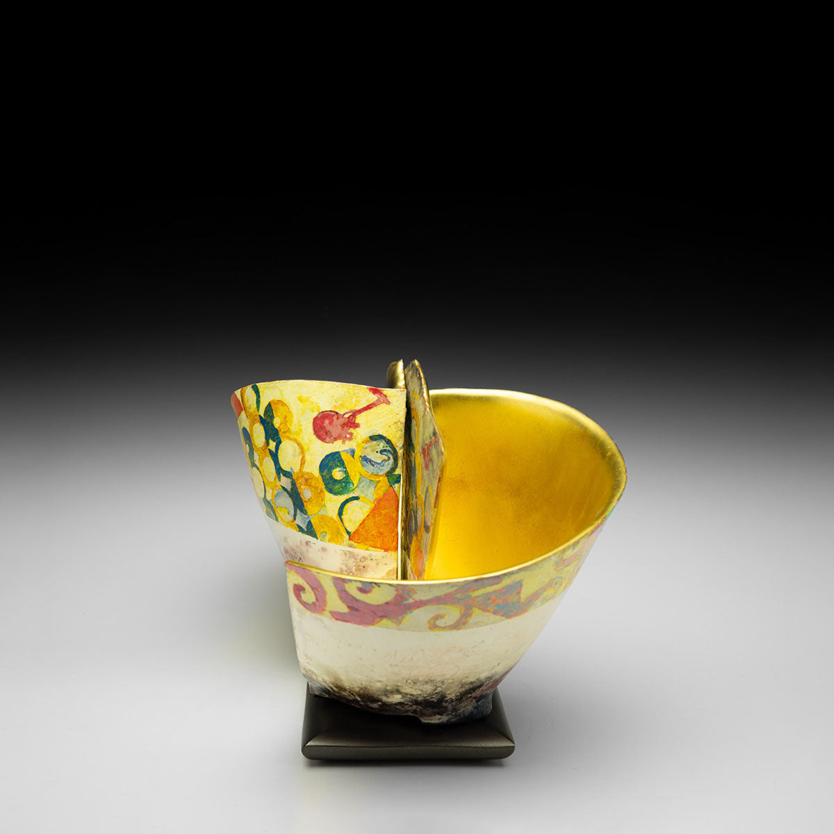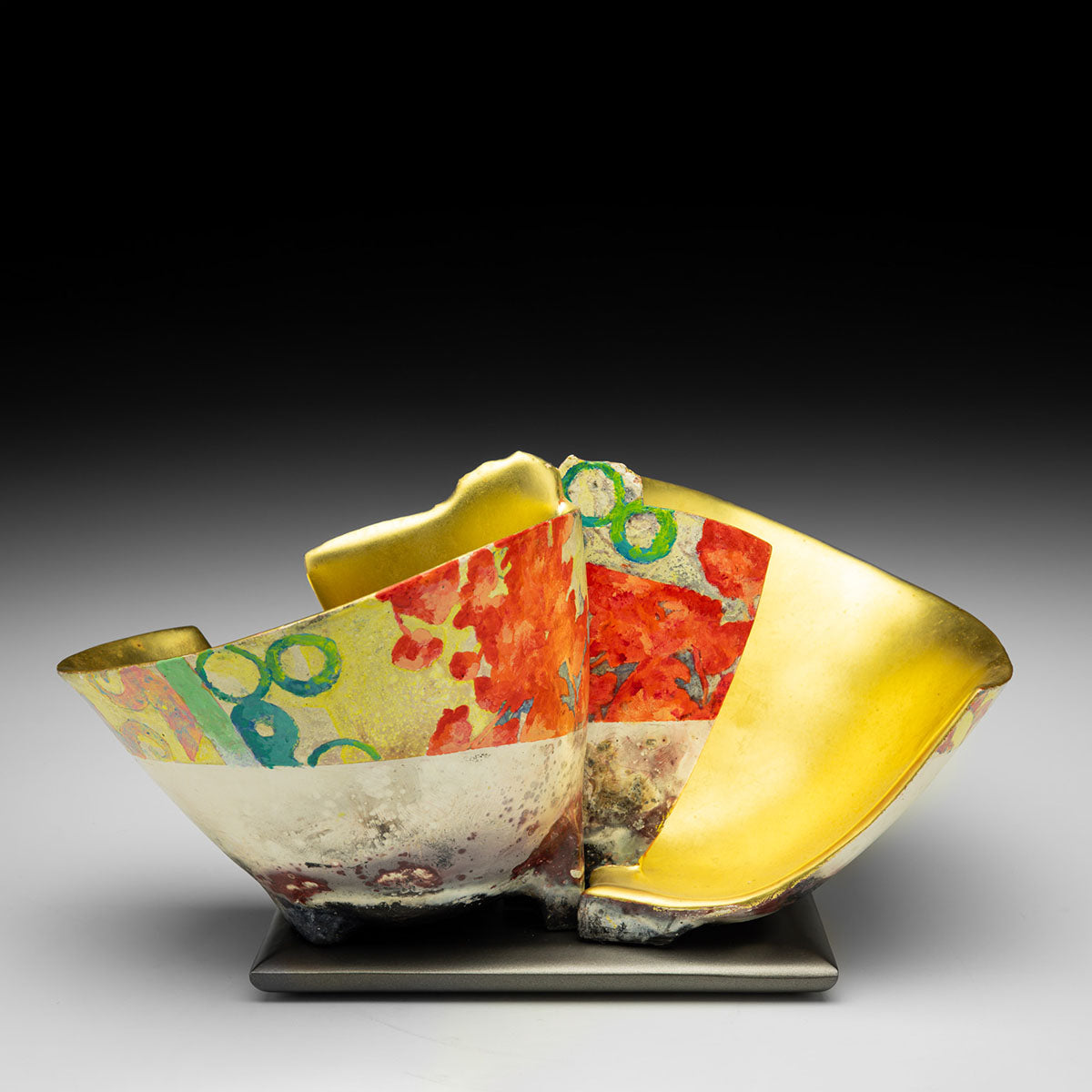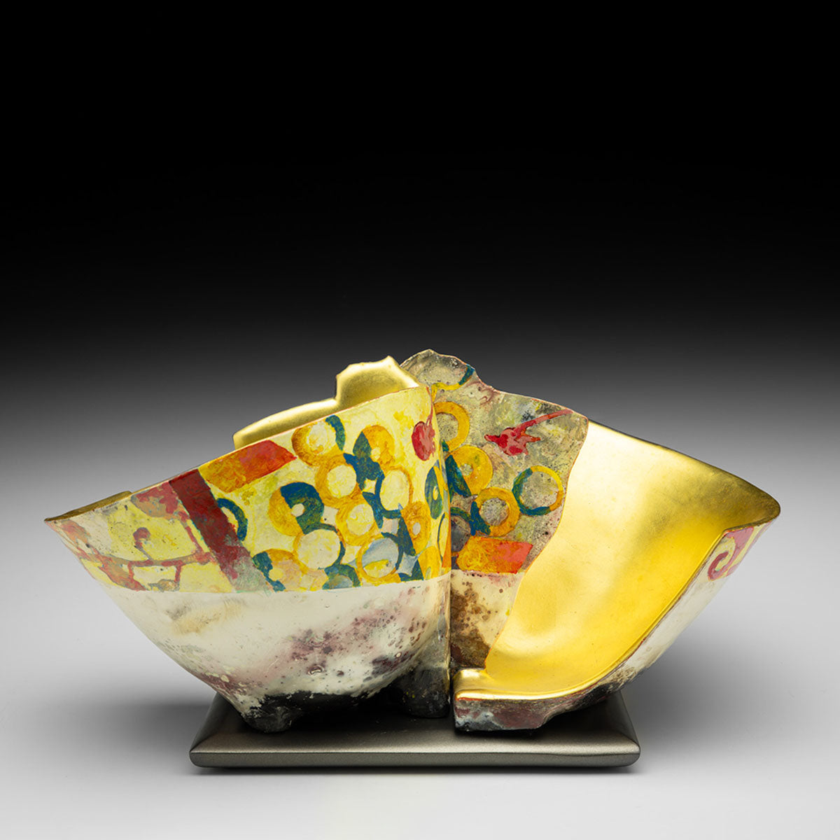 Pit Fired, Painted, Gilded Earthenware.- MEDIUMClay