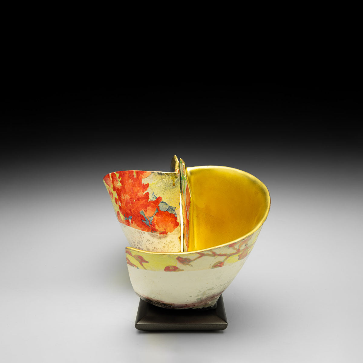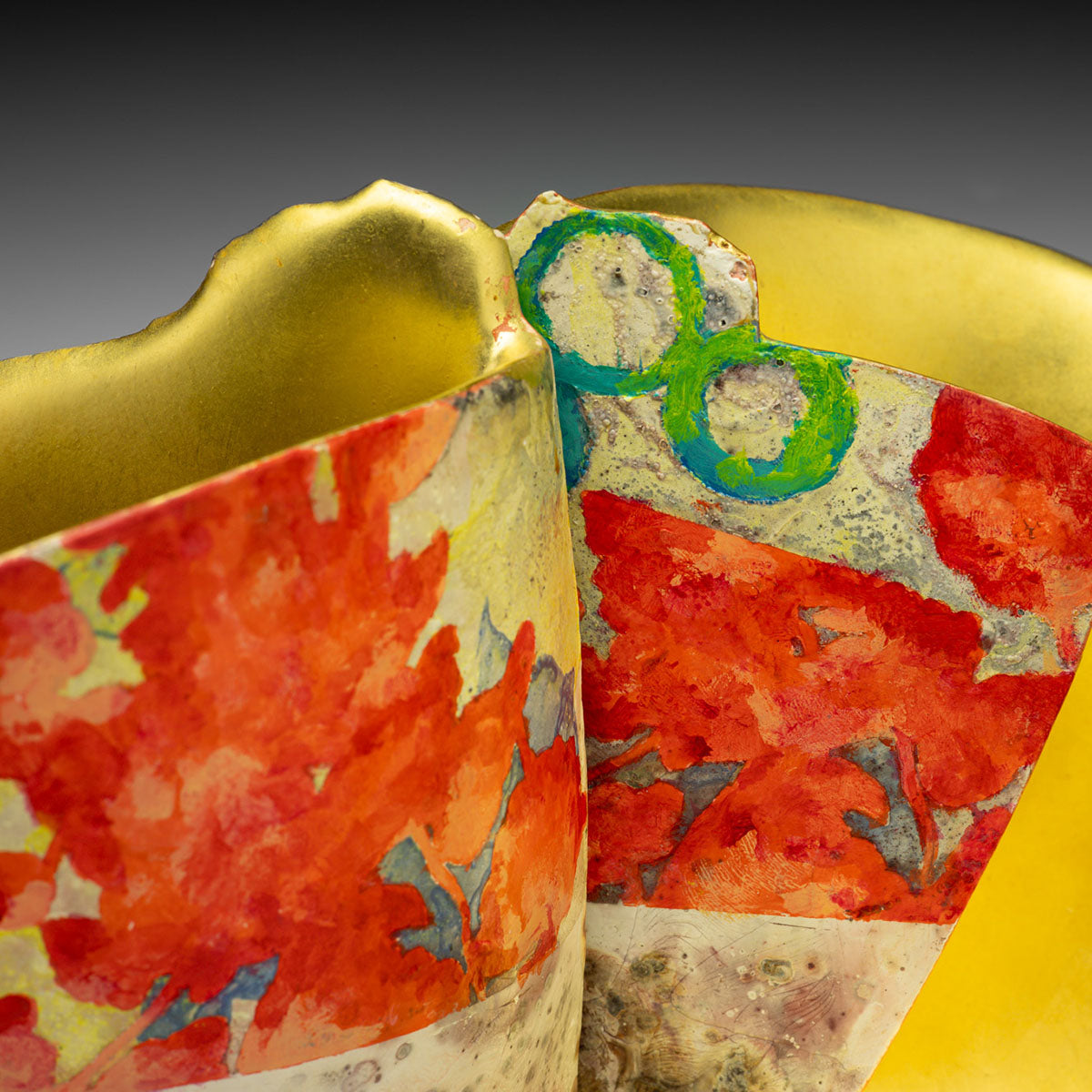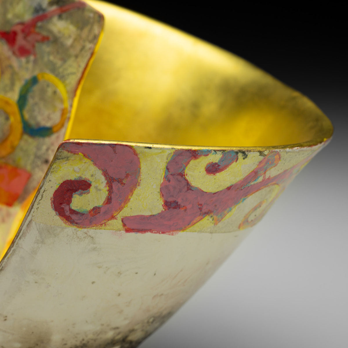 Pit Fired, Painted, Gilded Earthenware.- MEDIUMClay