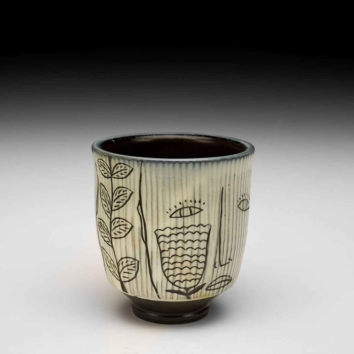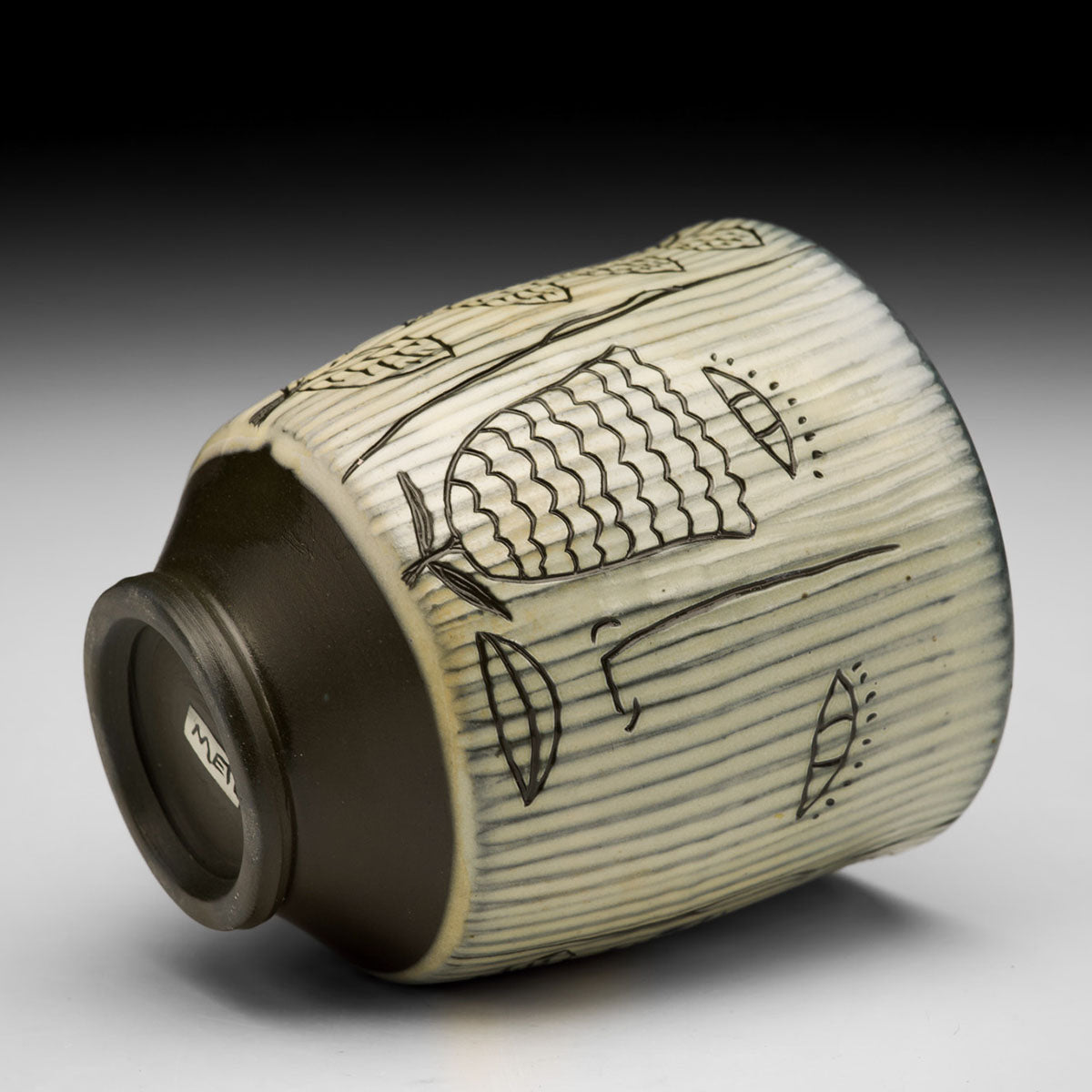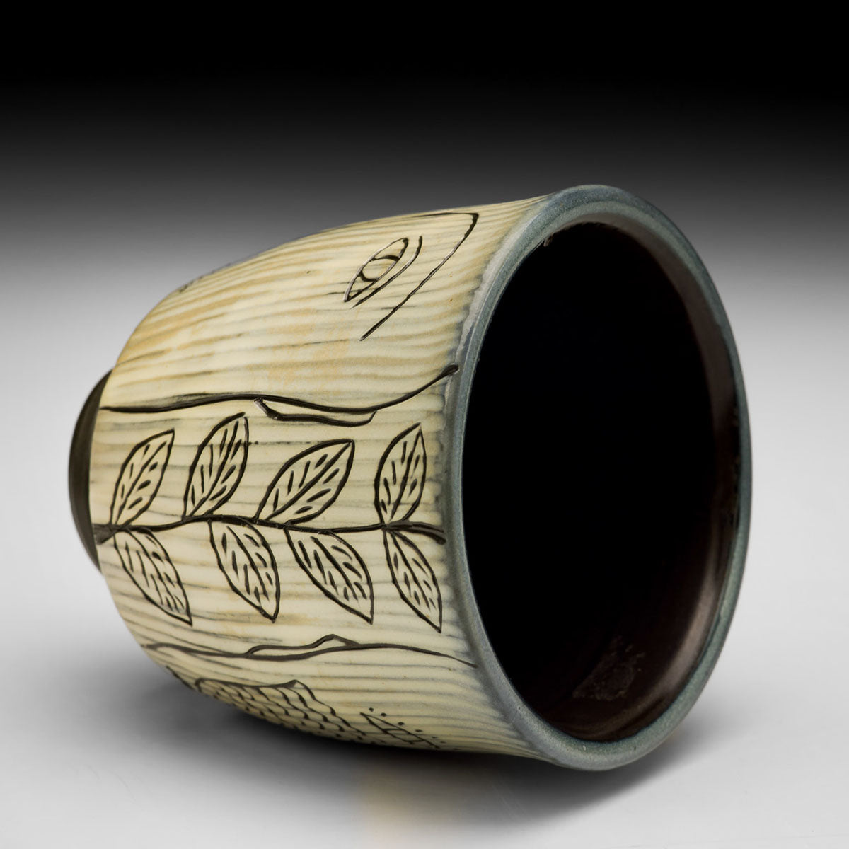 Black Porcelain, Soda Fired, Carved